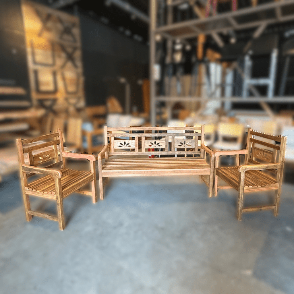 CONJUNTO DE BANCO FLOR MADEIRA DE DEMOLIÇÃO